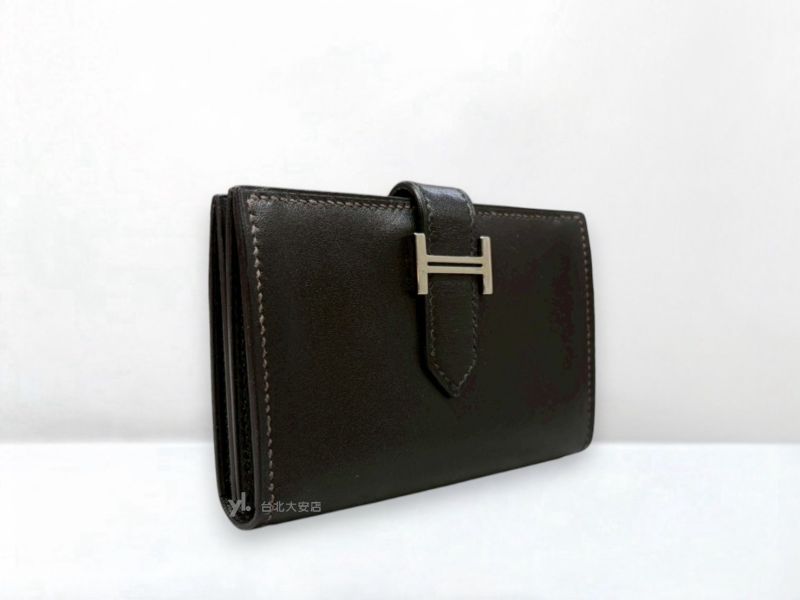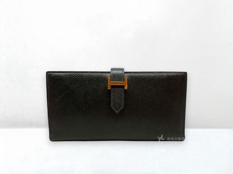 A10199 HERMES皮夾 BearnWallet黑色epson金釦H長夾 (台北大安店)