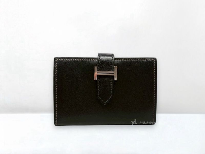 A10406 HERMES卡夾 Bearn 89黑色box皮銀扣對開卡夾 (台北大安店)