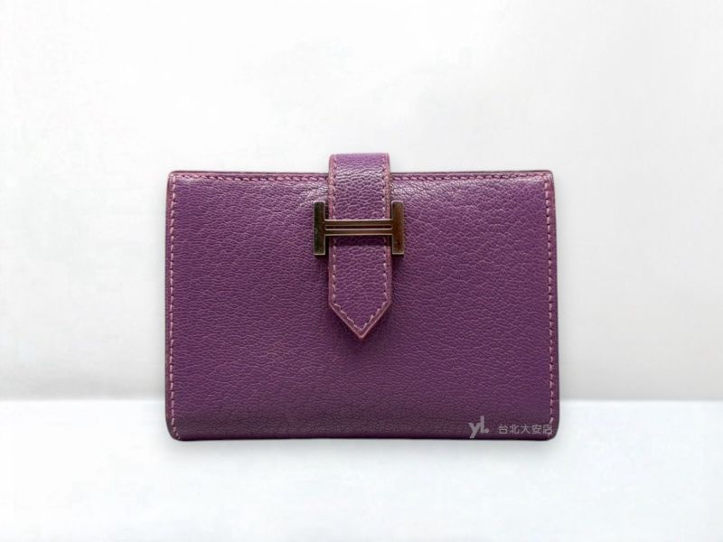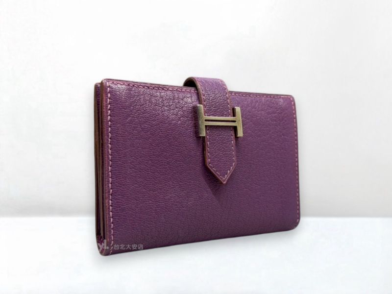 A6844 HERMES卡夾 Bearn海葵紫P9銀釦山羊皮名片夾 (台北大安店)