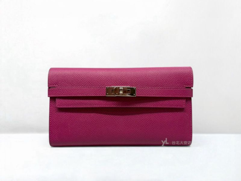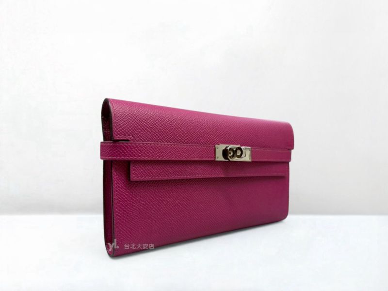 B6364 HERMES皮夾 KELLY L3玫瑰紫EPOSM皮銀釦長夾 (台北大安店)