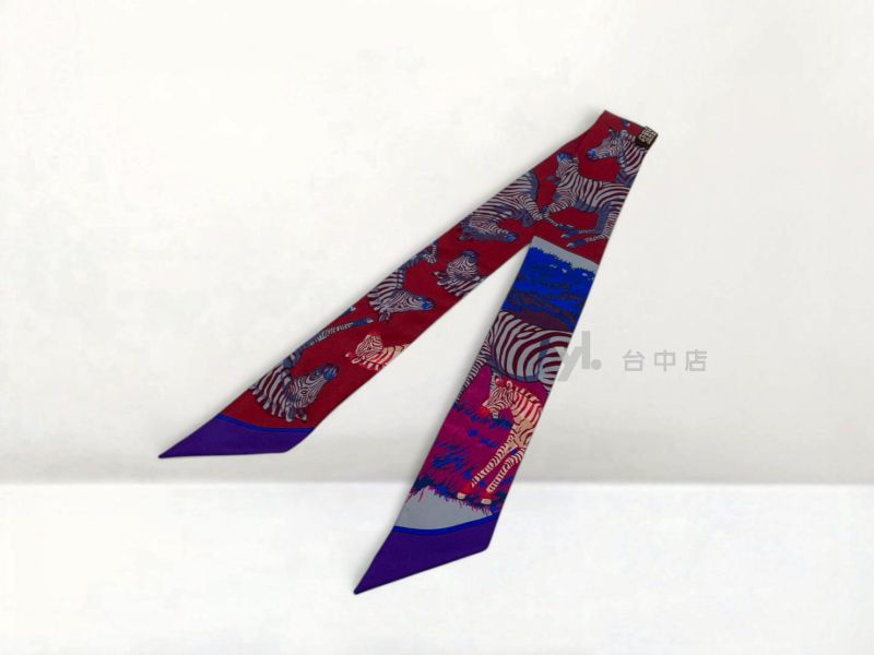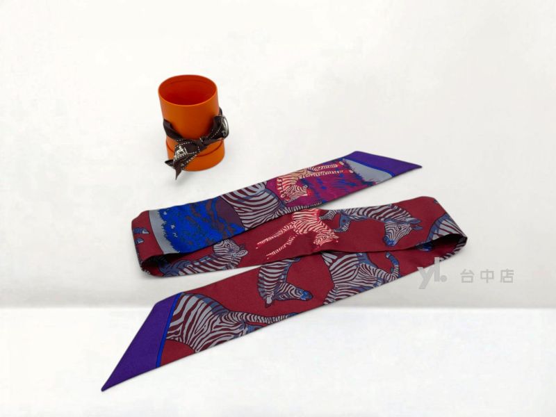 I1054 Hermes絲巾 酒紅底紅藍斑馬拼紅底紫字TWILLY (台中店)