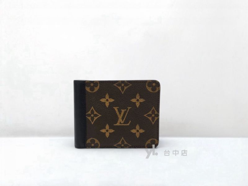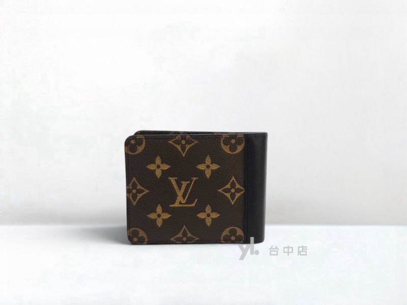 I1685 LV皮夾 原花拼黑牛皮對開6卡短夾 M93801 (台中店)