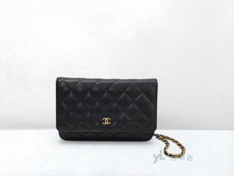I1865 Chanel包包 黑色荔枝牛皮金釦下蓋6卡皮穿鏈WOC斜背包AP0250 (台中店)