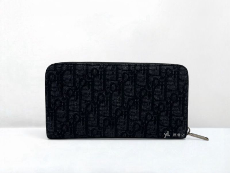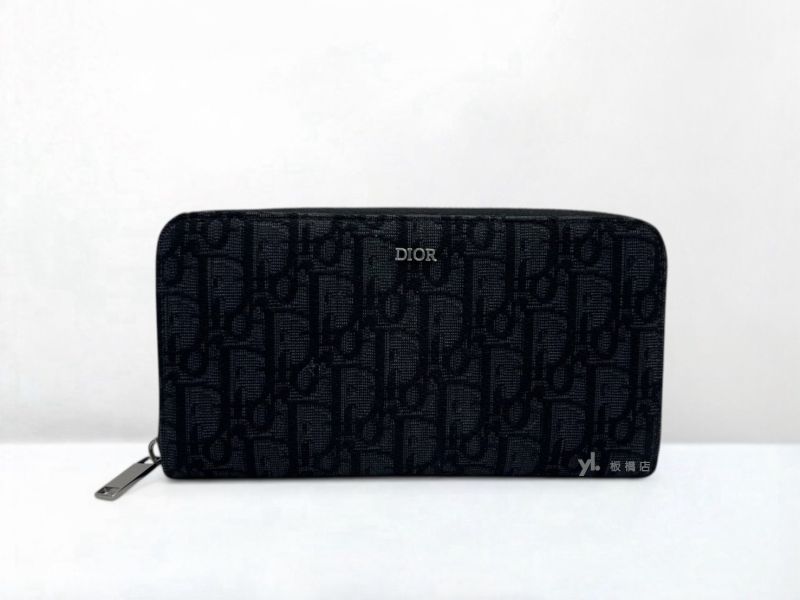 S5386 DIOR皮夾 Oblique 黑色緹花拉鍊長夾 (板橋府中店)