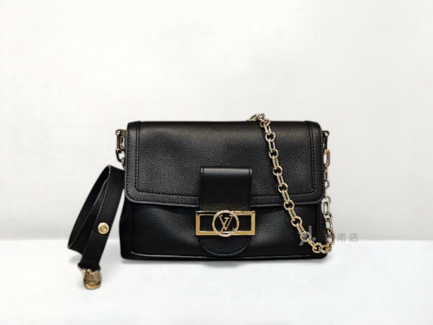 M1180 LV包包 黑牛皮Doupline Soft MM金釦肩斜背包M25209(台南店)