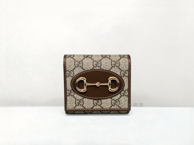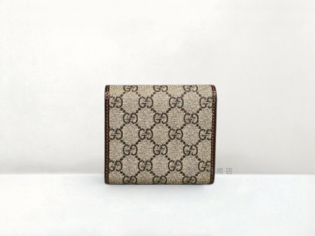M1202 Gucci皮夾 咖PVC1955金釦下蓋6卡L拉零錢短夾(台南店)