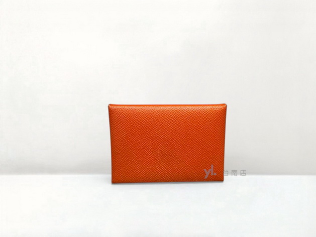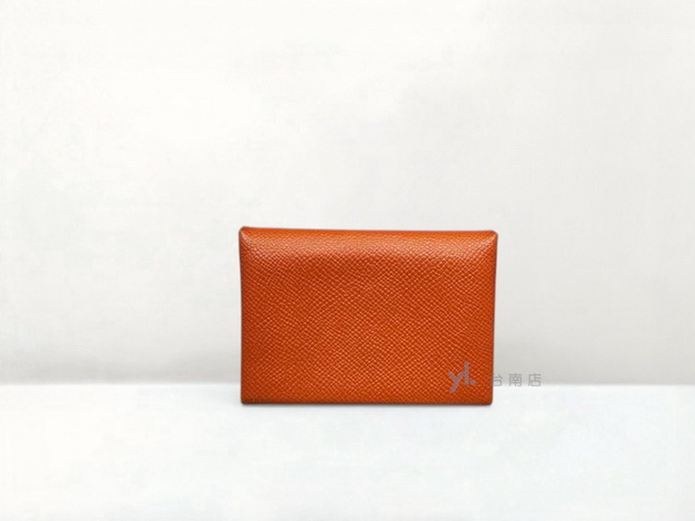 M1204 Hermes卡包 橘Epson皮Calvi Duo銀釦對開式零錢卡包(台南店)