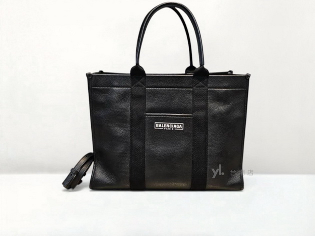 M1205 Balenciaga包包 黑牛皮白字樣Hardware銀釦托特包(台南店)