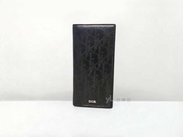 V3480 Dior皮夾 黑洞洞牛皮銀釦內一字拉零錢袋16卡對開長夾2ESBC002VPD-H03E(台南店)