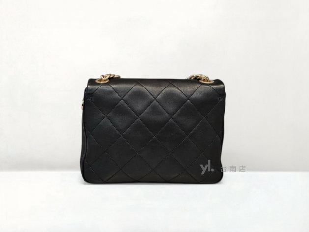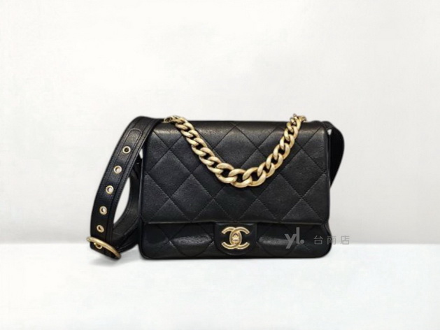 V3885 Chanel包包 黑羊皮大菱格紋金釦下蓋手提間斜背包AS2842(台南店)