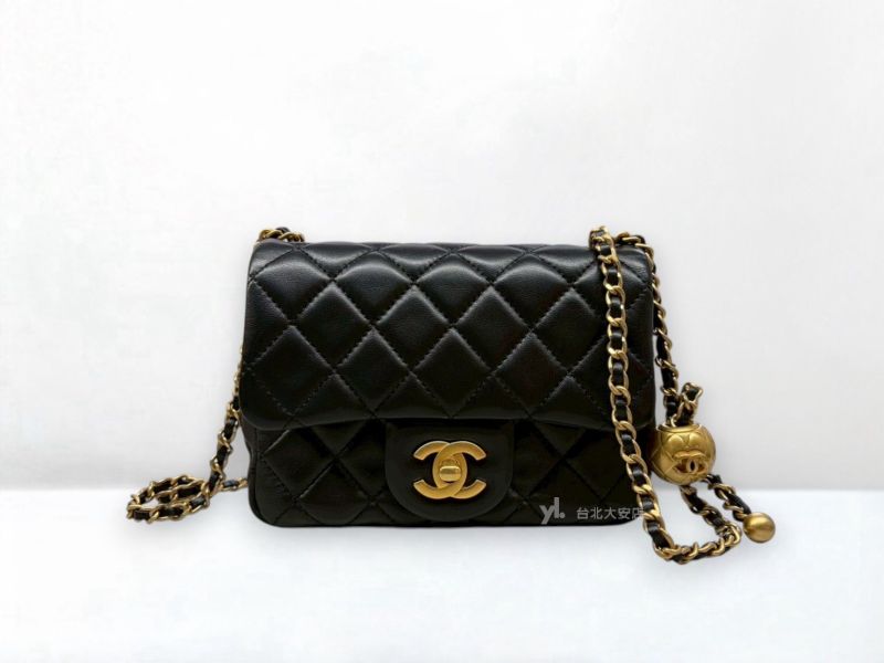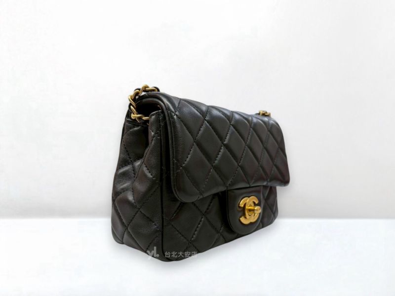 A13116 CHANEL包包 黑色羊皮金球方胖子口蓋包AS1786 (台北大安店)
