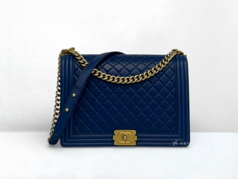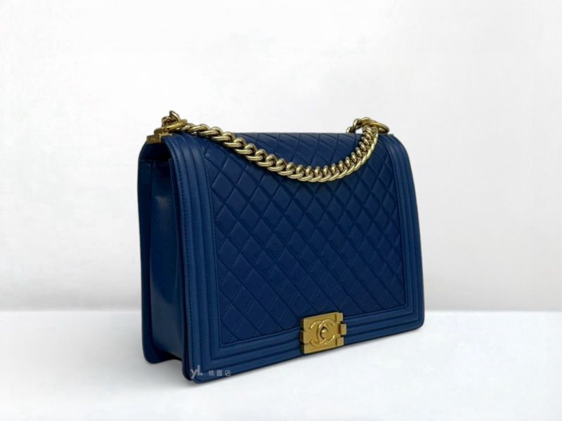C2942 CHANEL包包 深藍羊皮菱格紋金釦Boy30cmA67087 (桃園店)