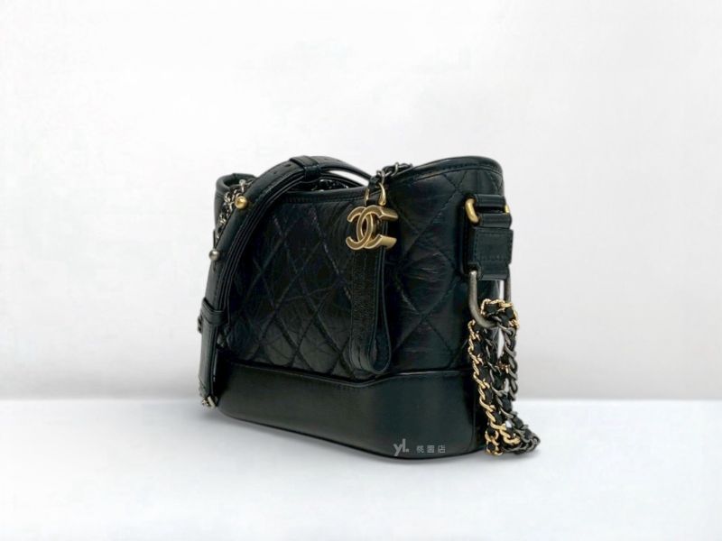 S5181 Chanel包包 黑復刻牛皮菱格三色鏈手提斜背流浪托特包 (板橋府中店)
