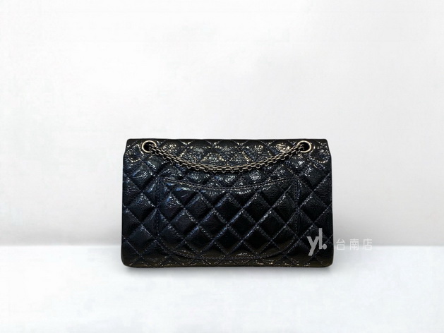 M1155 Chanel包包 深藍漆亮皮菱格紋2.55霧銀釦肩斜背包 (台南店)