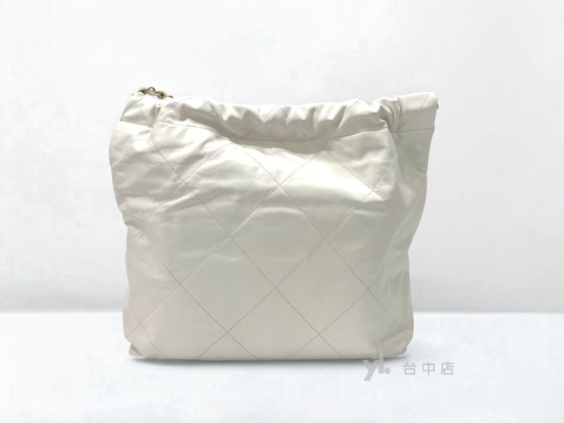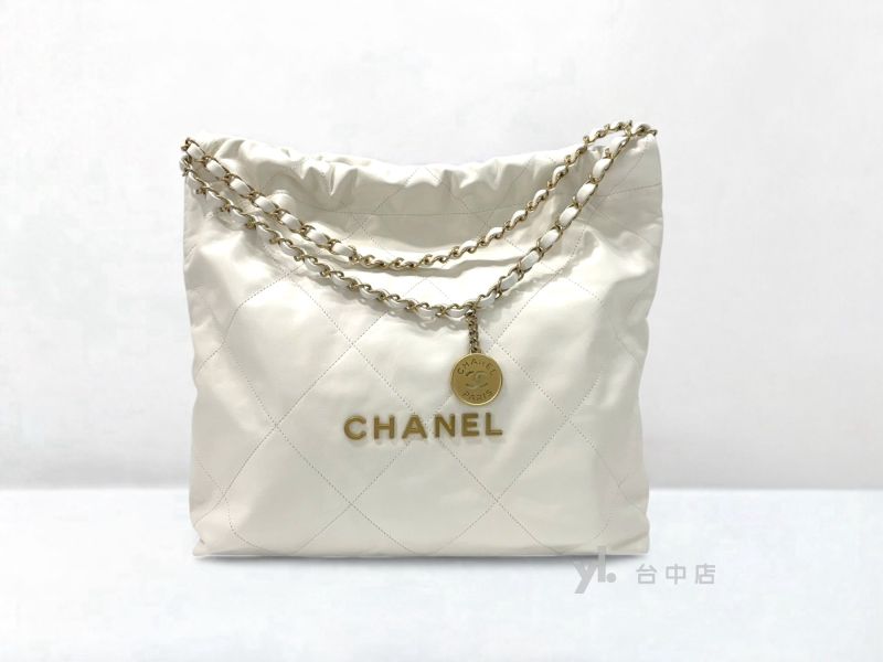 I1636 Chanel包包 白牛皮金釦22中號肩背托特包 AS3261 (台中店)