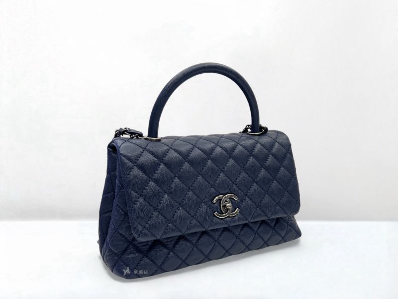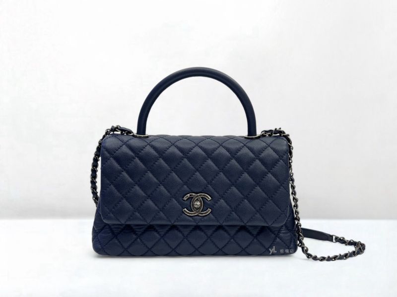 S5162 CHANEL包包 深藍色荔枝皮復古銀釦coco handle28 (板橋府中店)
