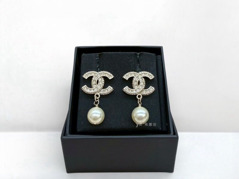 C3727 Chanel耳環 淡金珍珠雙C Logo水鑽耳環 (桃園店)
