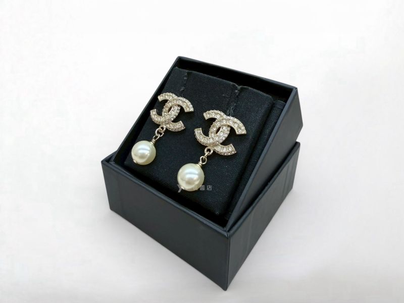 I1612 Chanel耳環 珍珠拚水鑽小雙C針式耳環 (台中店)