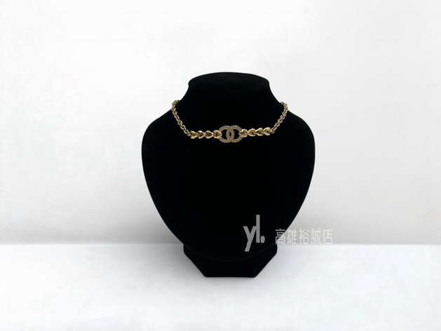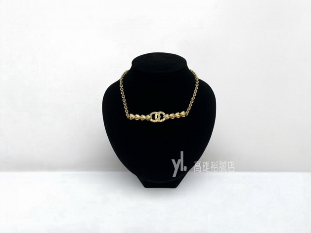 K11039 Chanel頸鍊 金色鑲鑽雙C logo愛心頸鍊ABA259 (高雄裕誠店)