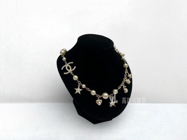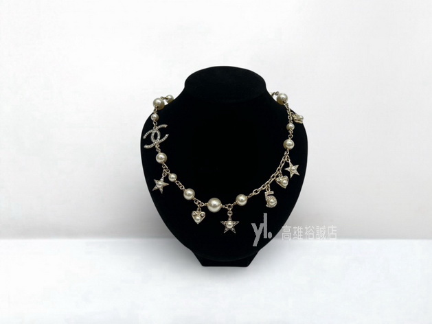 K11289 Chanel項鍊 水鑽雙C珍珠星星愛心5掛飾項鍊 (高雄裕誠店)