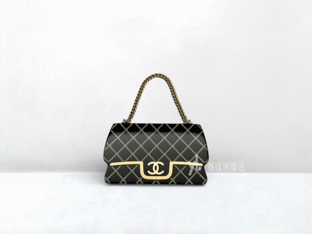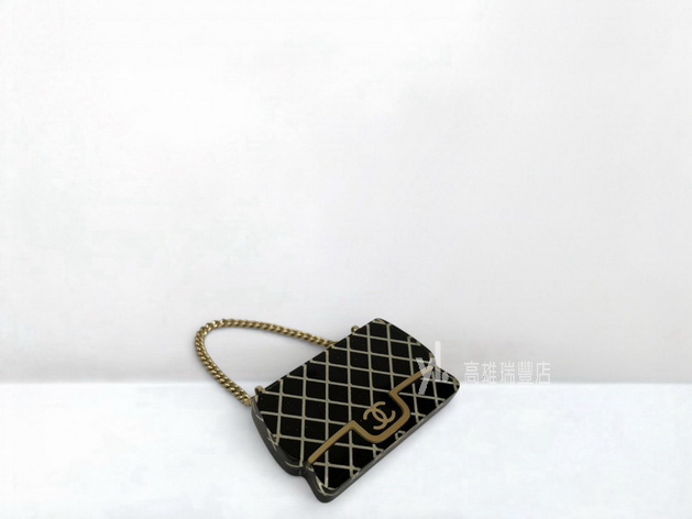 Q1412 Chanel胸針 黑底壓克力CoCo包金鏈胸針AB1263 (瑞豐店)