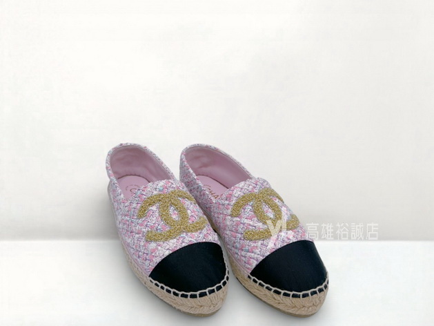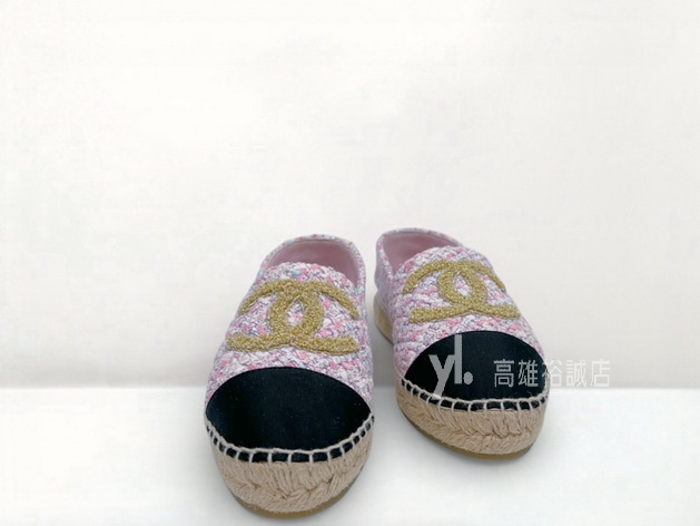 K11358 Chanel草編鞋 粉白紫毛呢黑布面草編鞋 (高雄裕誠店)