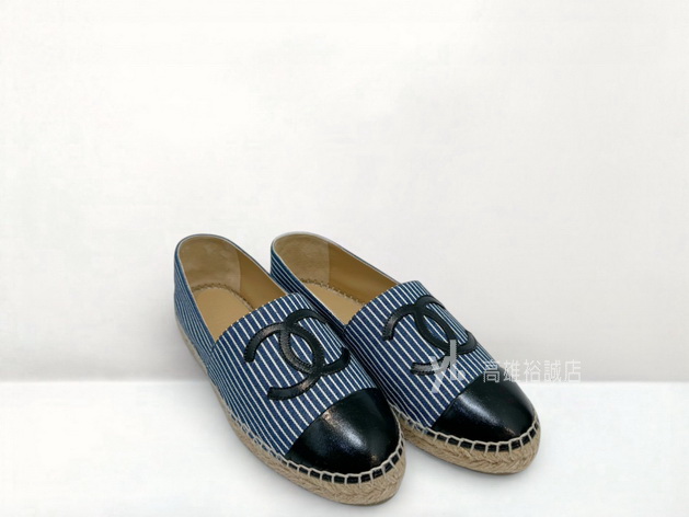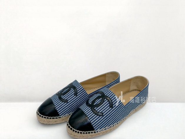 P5018 Chanel鉛筆鞋 藍白條紋帆布拚黑牛皮草編鉛筆鞋G29762 (高雄裕誠店)