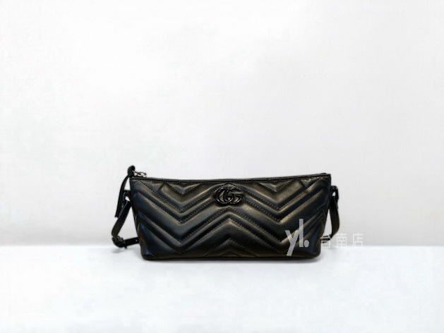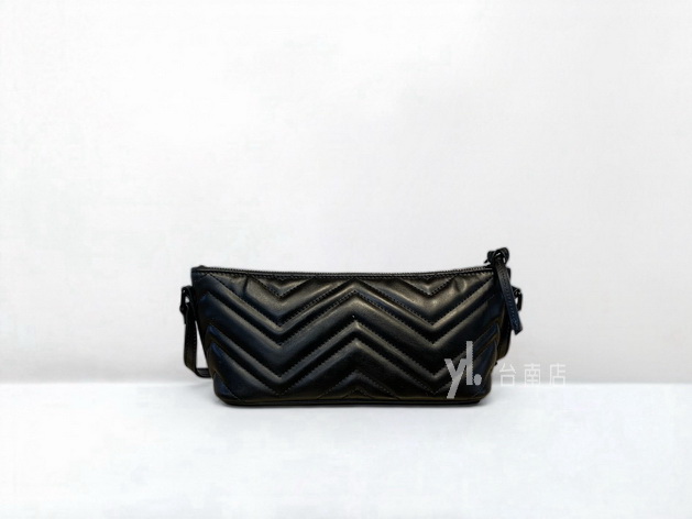 V4227 Gucci包包 黑牛皮山型紋Marmont黑釦一字拉手提肩背腋下包 (台南店)