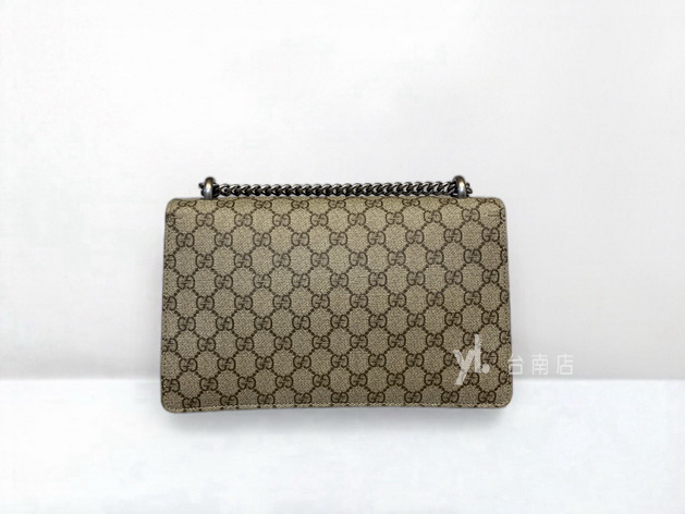V4261 Gucci包包 咖PVC拚麂皮Dionysus銀釦下蓋肩斜背酒神包 (台南店)