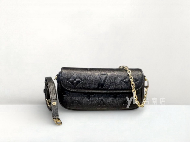 M1192 LV包包 黑牛皮壓紋WalletOnChain Ivy 金釦下蓋肩斜背包M82154 (台南店)