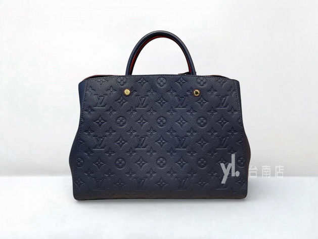 V4160 LV包包 海軍藍牛皮壓紋金釦MontaigneGM手提肩背包M43238 (台南店)