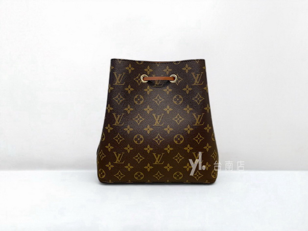 V4234 LV包包 原花拼咖皮邊NeoNeo MM金釦束口肩斜背水桶包M44887 (台南店)
