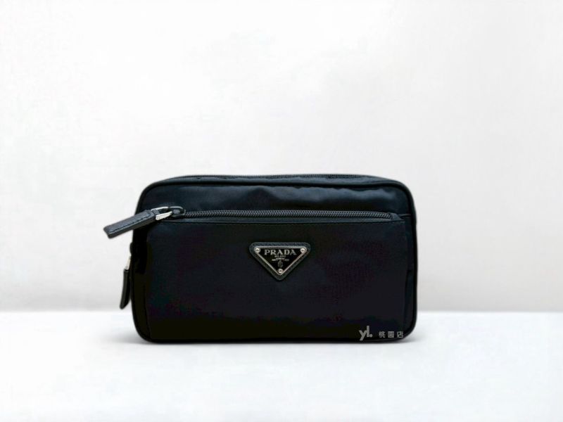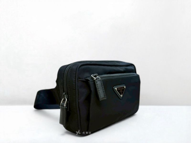 C3795 PRADA包包 黑色尼龍布Saffiano拉鍊胸口腰包2VL977 (桃園店)