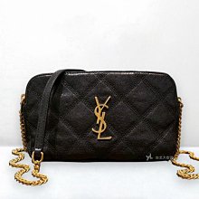 A13059 YSL包包 黑色菱格小羊皮金釦雙拉鍊相機包608941 (台北大安店)