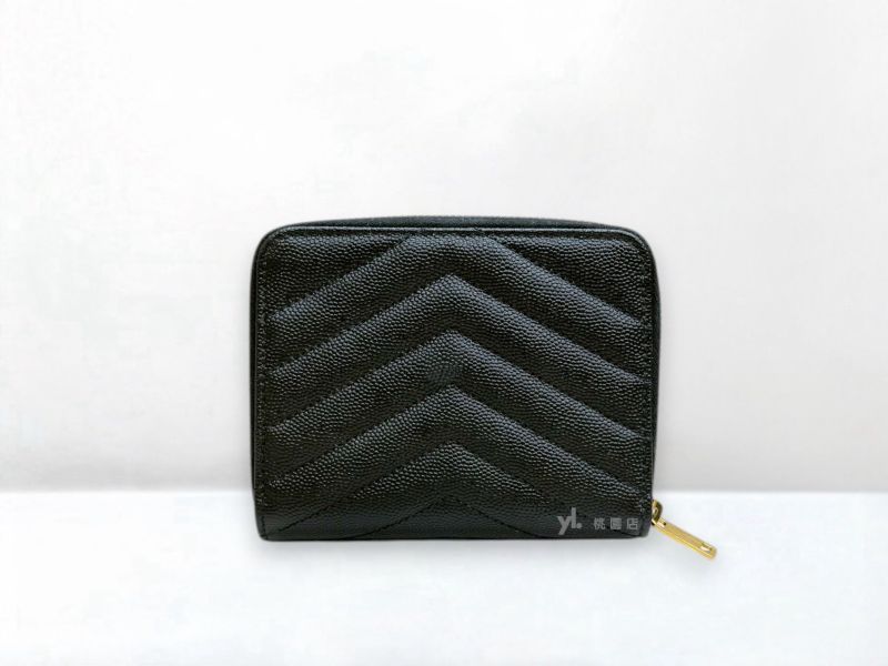 I1852 YSL零錢包 黑牛皮V型紋金釦一字拉鑰匙圈零錢包 (台中店)