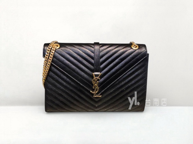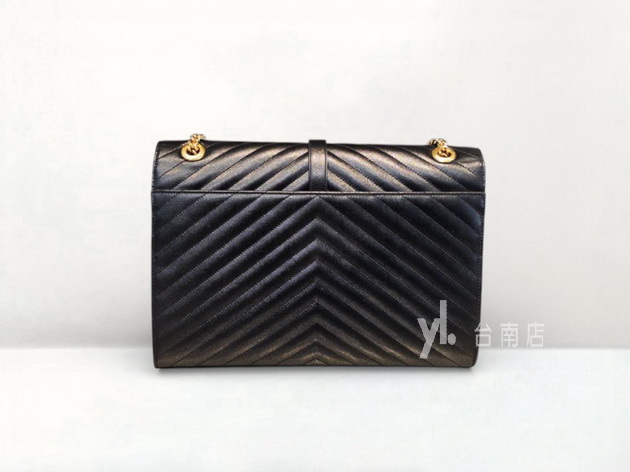 V4291 YSL包包 黑荔枝牛皮Envelope大號金釦肩斜背包 (台南店)