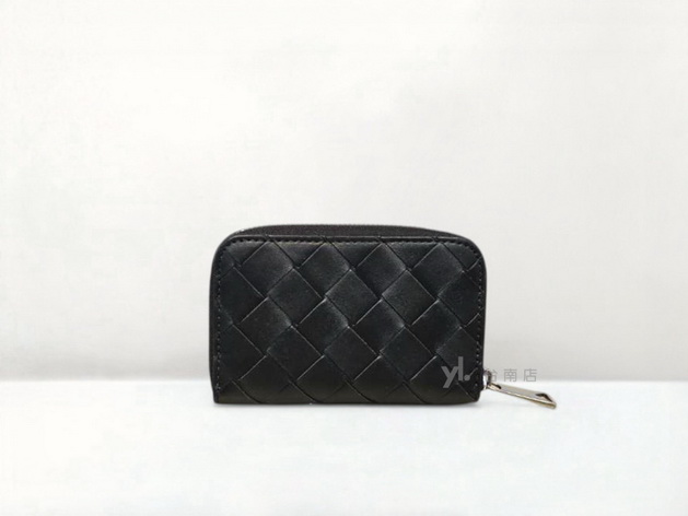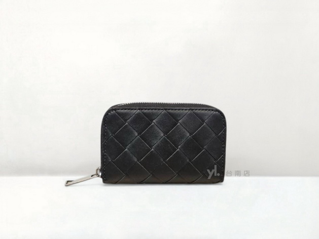 C3834 BV皮夾 黑編織牛皮對開零錢袋短夾805654 (桃園店)