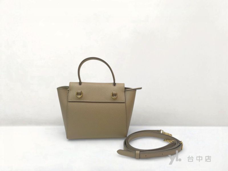 I1930 Celine包包 奶茶色牛皮金釦PicoBelt手提肩背斜背包 (台中店)