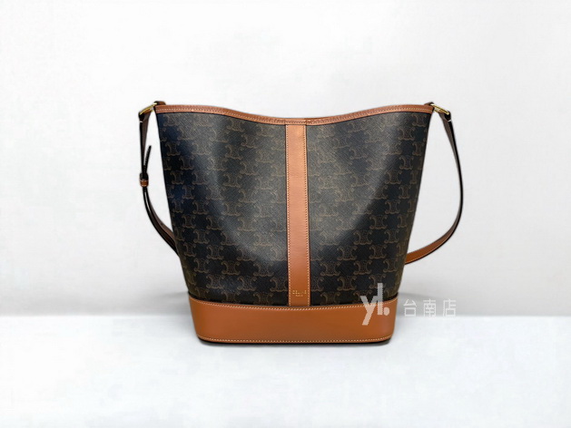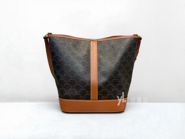 M1193 Celine包包 咖PVC拚咖皮邊金釦中號肩斜背水桶包191132CAS.04LU (台南店)