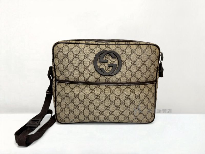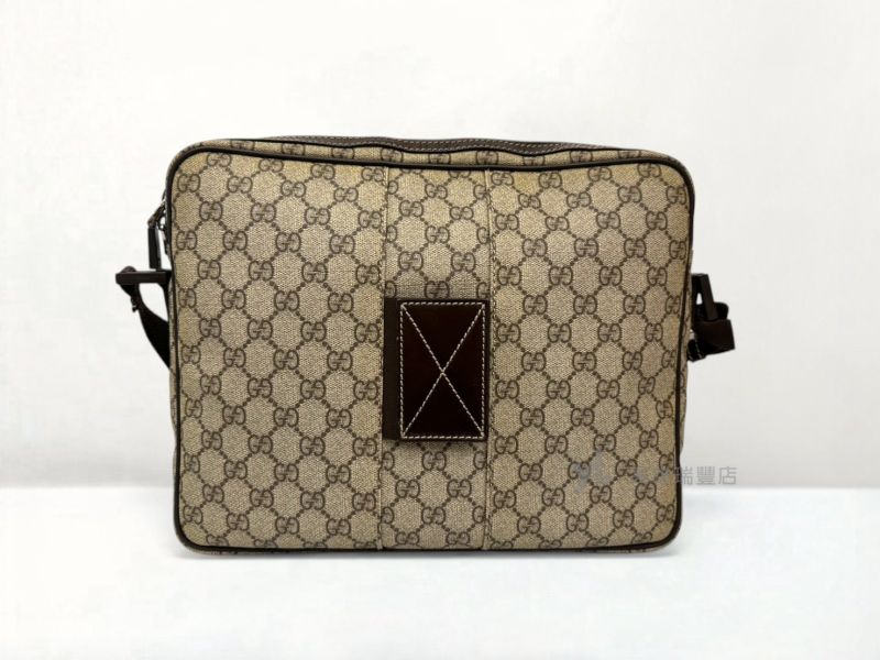 Z0274 Gucci包包 PVC深棕牛皮邊銀釦前磁吸口袋斜背包 (瑞豐店)