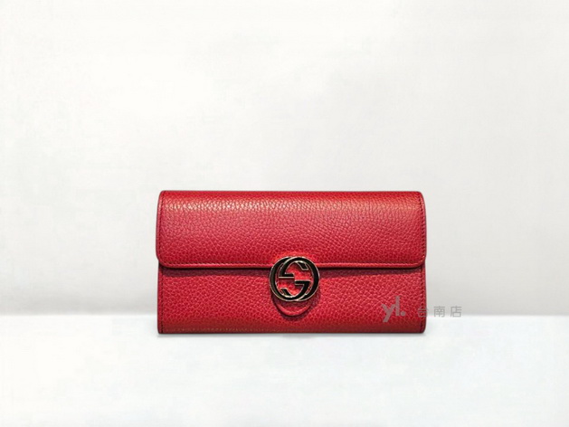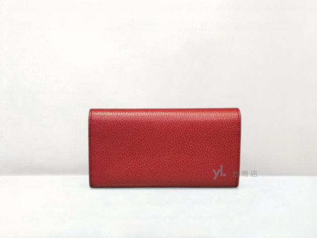 V4228 Gucci皮夾 紅牛皮淡金釦下蓋12卡長夾 (台南店)