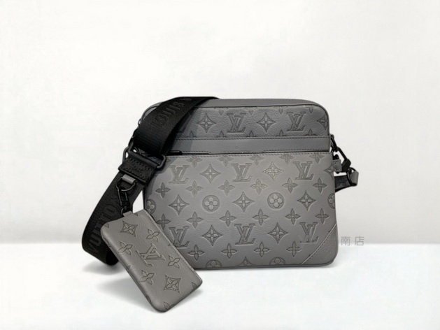 V4241 LV包包 灰牛皮壓紋Trio黑釦肩斜背三合一郵差包M46603 (台南店)