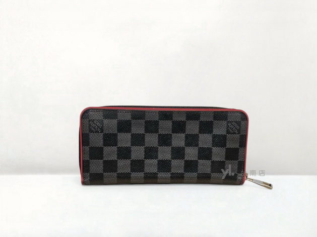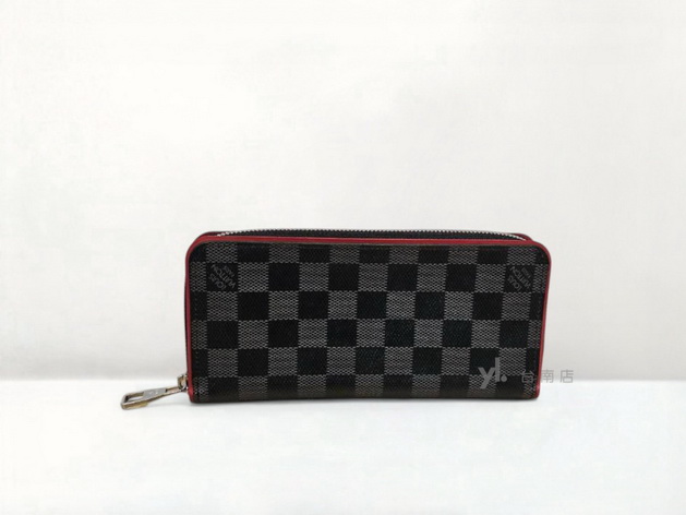 V4274 LV皮夾 黑灰棋盤格滾紅邊拚內紅銀釦ㄇ拉14卡長夾N63304 (台南店)