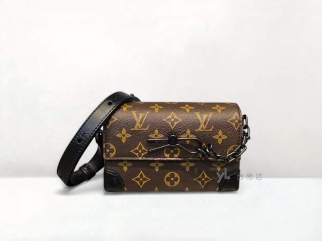 V4282 LV包包 原花Steamer黑釦下蓋前迴紋針鏈帶肩斜背包M83613 (台南店)
