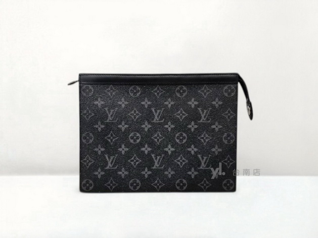 V4284 LV包包 黑灰原花PochetteVoyageMM銀釦一字拉手拿包M61692 (台南店)
