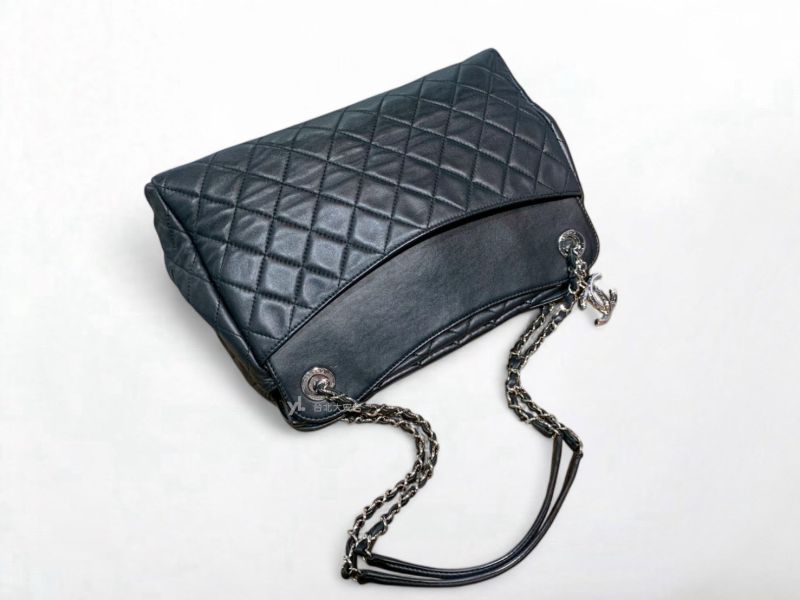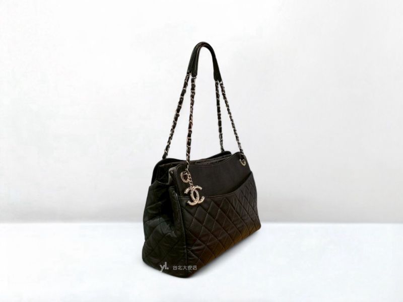 A12828 CHANEL包包 黑色菱格羊皮銀釦托特包A94148 (台北大安店)