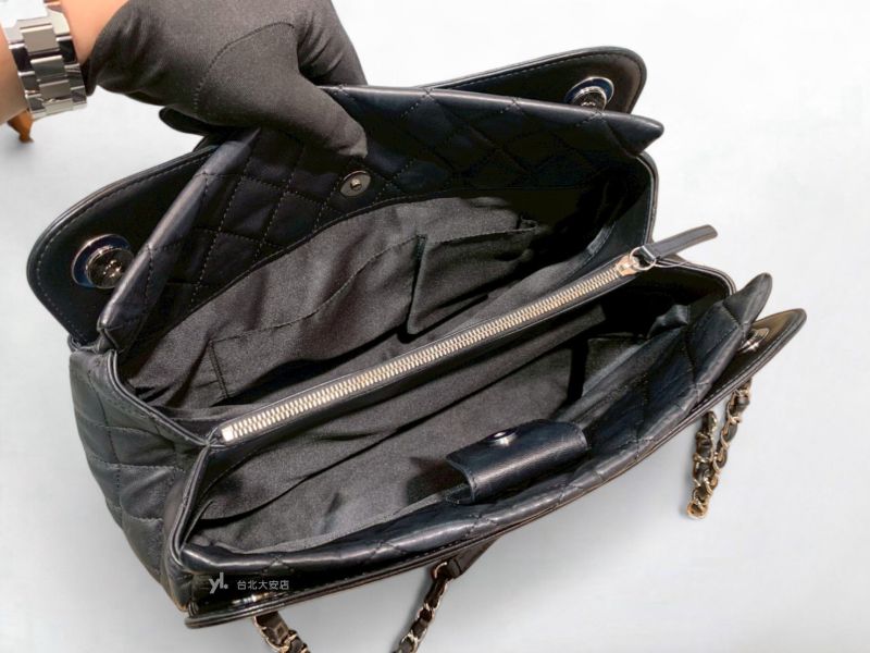 • A11564 Chanel包包深藍色牛皮復古釦孟買雙層托特包(台北店)
