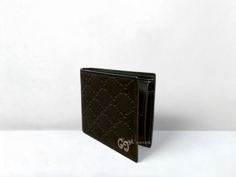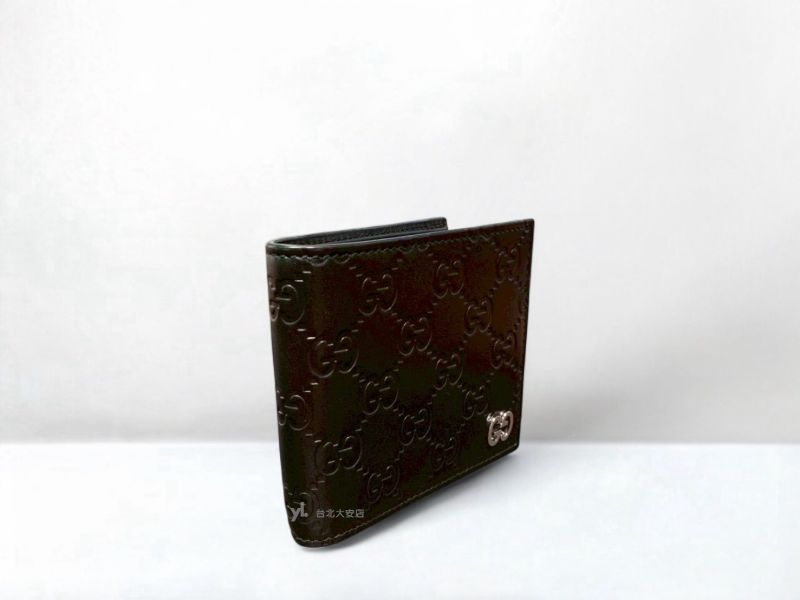 A12829 GUCCI皮夾 黑色GG壓紋老花銀釦對開短夾473922 (台北大安店)