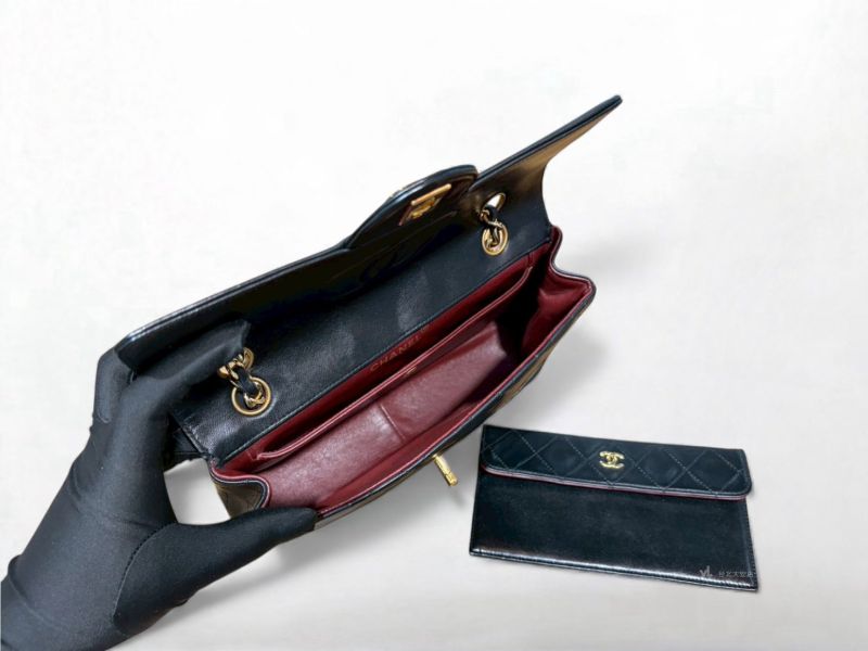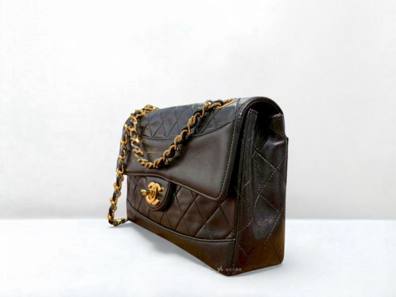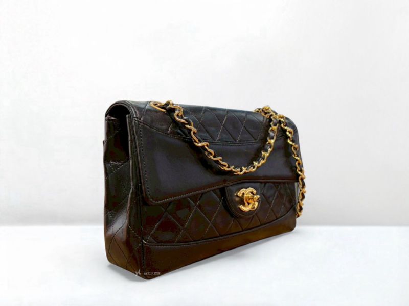 路徑: 首頁 / 商品 / BRAND / Chanel / A12834 CHANEL包包 Vintage黑色羊皮金釦口蓋包 (台北大安店)...