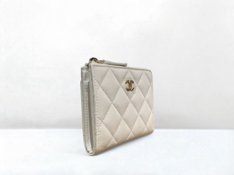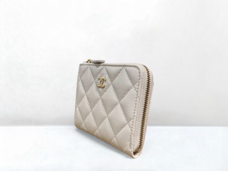 A12841 CHANEL皮夾 白色荔枝牛皮淡金釦L拉錢包AP3999 (台北大安店)
